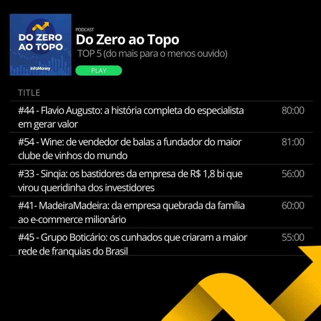 O Do Zero ao Topo — podcast de empreendedorismo do InfoMoney que conta a trajetória de grandes homens e mulheres de negócios do país — reuniu os ensinamentos da história dos cinco episódios de maior audiência lançados neste ano.