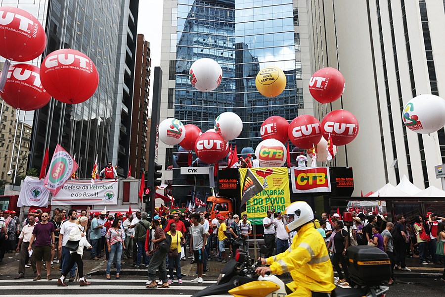 Em São Paulo, centenas de manifestantes se reúnem, neste momento, na frente da sede da Petrobras e também no vão livre do Museu de Arte de São Paulo (Masp) para participar do Dia Nacional de Luta em Defesa dos Direitos da Classe Trabalhadora, da Petrobras, da Democracia e da Reforma Política.