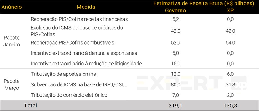 É uma elevação importante, mas que provavelmente não fechará a conta. Nas contas da XP, mesmo incluindo essa arrecadação adicional, o déficit primário em 2024 ficará próximo a 1% do PIB – diferente do 0% contido na meta indicada pelo Ministério da Fazenda (detalhes em nosso último relatório mensal, aqui). Neste cenário, a dívida pública como proporção do PIB deve voltar a crescer nos próximos anos.