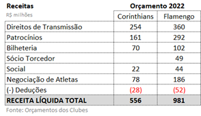 A partir deste artigo e ao longo de algumas semanas, falarei sobre os orçamentos dos clubes brasileiros para 2022. A ideia é tratá-los de forma comparativa, para mostrar semelhanças, diferenças, virtudes e defeitos das peças preparadas pelos clubes. No primeiro artigo, falaremos sobre Corinthians e Flamengo.