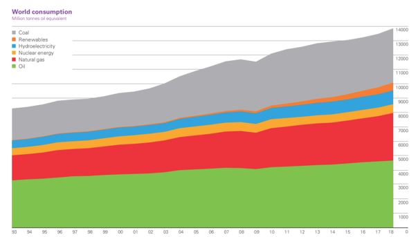 Como podemos ver pelo gráfico abaixo, o crescimento do uso de energia é algo que vem ocorrendo com uma incrível regularidade, o que torna razoavelmente fácil modelar o crescimento esperado para os próximos anos.