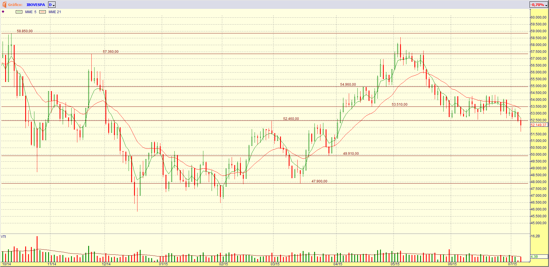 No exterior temos a Grécia, que corre risco de deixar a zona do euro, China, cuja bolsa chegou a perder 30% de valor entre o dia 12 de junho e o fechamento na semana passada, o banco central americano (Fed), que poderá iniciar a subida de juros em setembro e internamente a crise política, com possibilidades reais de impeachment da presidenta Dilma e os desdobramentos do ajuste fiscal.