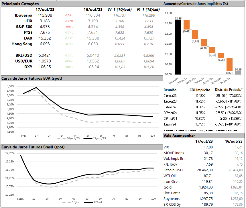 Vale ainda acompanhar algumas visitas internacionais: Putin na China e Biden em Israel chamam mais a atenção, mas a lista mais longa é do Antony Blinken. Esse cara ta viajando mais do que Marco Polo. Pensa no jet lag. E vale acompanhar também a novela que é a política norte-americana. O leitor atento sabe que o Congresso está sem presidente, mas houve algumas votações: Em nenhuma ainda tivemos maioria, mas Jim Jordan (Republicano) estava liderando as apostas, até que teve 200 votos versus 212 de Hakeem Jeffries. O número não é suficiente para eleger nenhum dos dois, claro, mas assusta o fato do Jeffries ter quase levado a casa, especialmente por um detalhe: Ele é Democrata numa casa com maioria Republicana. Eu sei que falo isso com frequência, mas que fase.