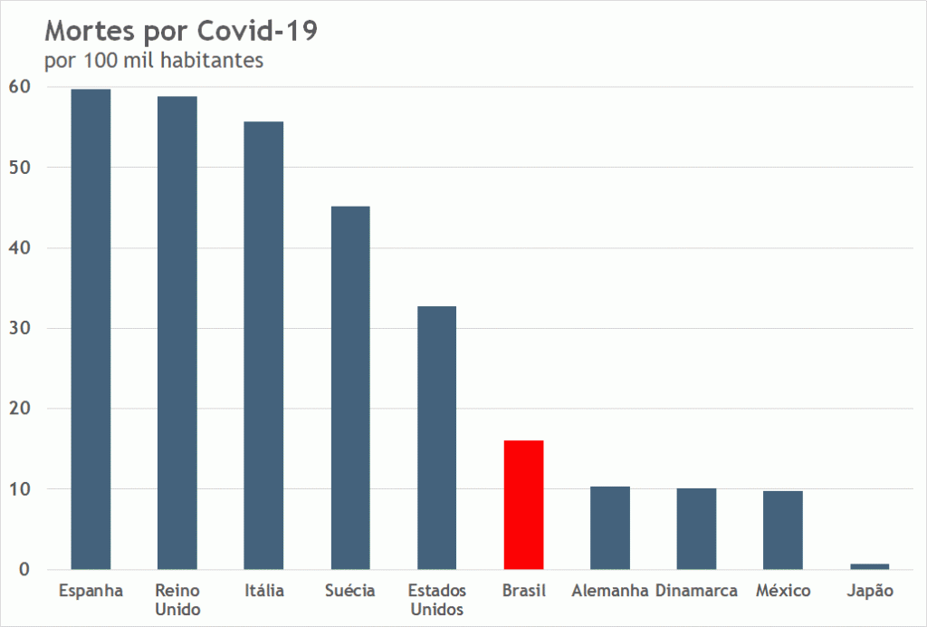 Figura 2: Mortes por 100 mil habitantes em países selecionados