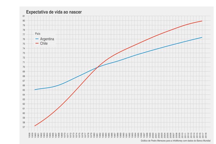 Os dados de educação e pobreza sugerem que não faz sentido associar esse crescimento econômico a uma mera melhora de bem-estar dos ricos. O maior nível de desenvolvimento do Chile – que é crescente – também se confirma em outros indicadores, como a expectativa de vida. Uruguai e Argentina foram recentemente ultrapassados pelos chilenos.