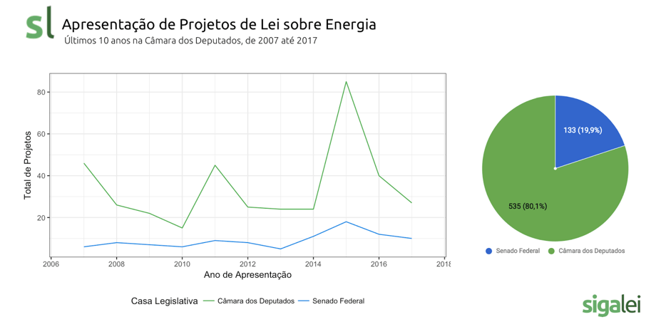 Desde 2007, identificamos na base do sigalei, 668 Projetos de Lei apresentados, sendo que 80% foram de introduzidos na Câmara e os outros 20% no Senado.