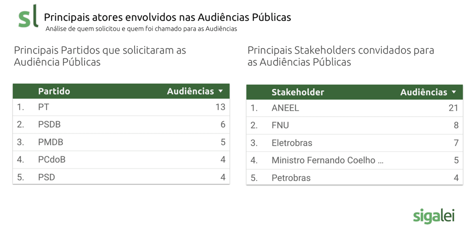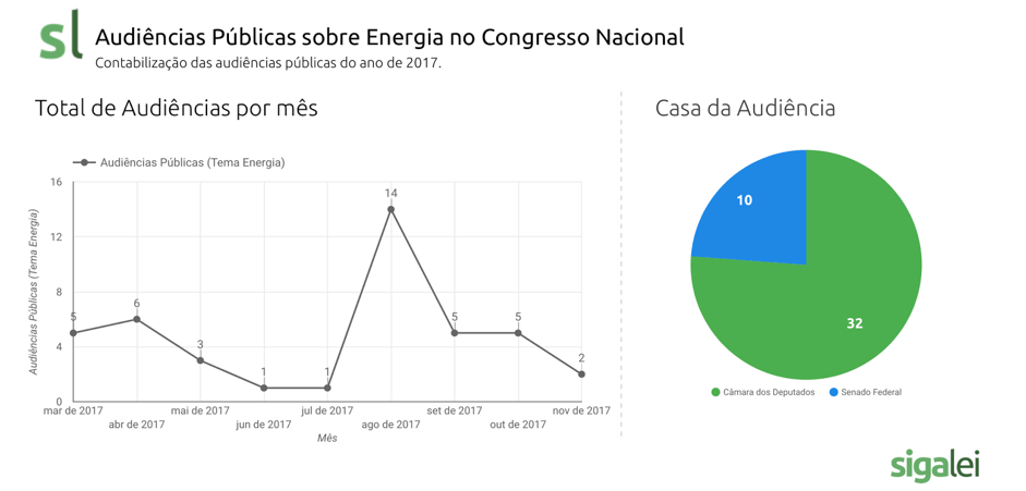 Até o momento, em 2017, ocorreram 42 audiência públicas sobre energia. Além disso, houve um reaquecimento do debate nos últimos meses, em Agosto ocorreram 14 audiências públicas para debater o tema Energia no Congresso Nacional.
