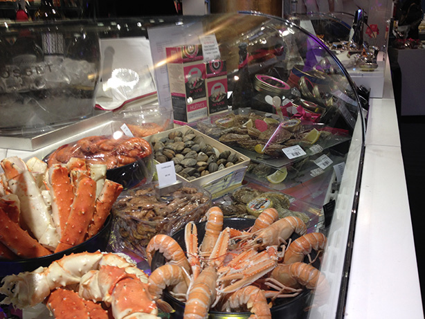 Aqui um esclarecimento. É um dos mais finos e completos mercados gastronômicos do mundo. Caro. Mas vale o passeio. Nem que não compre nada. Vale a pena passear pelas gôndolas repletas de produtos de todo o mundo. Caviar, salmão defumado, trufas, champagne! Tudo muito chic, tudo muito bonito e, como disse, tudo muito caro. Fica ao lado do Chez Nicolas. Funciona desde 1886. Precisa falar mais? Tem ainda um pequeno restaurante, que eles chamam de brasserie, no sub-solo e que serve pratos fantásticos e baratos. Mas chegue antes do meio dia e meia porque é muito concorrido e tem numero limitado de pratos do dia.