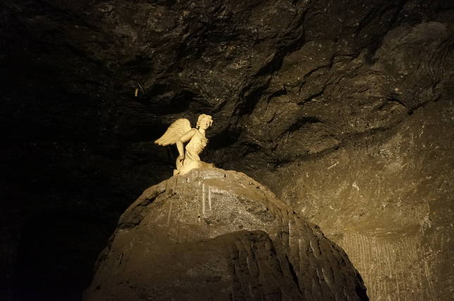 Arcanjo esculpido em sal observa turistas | Crédito: Paulo Panayotis