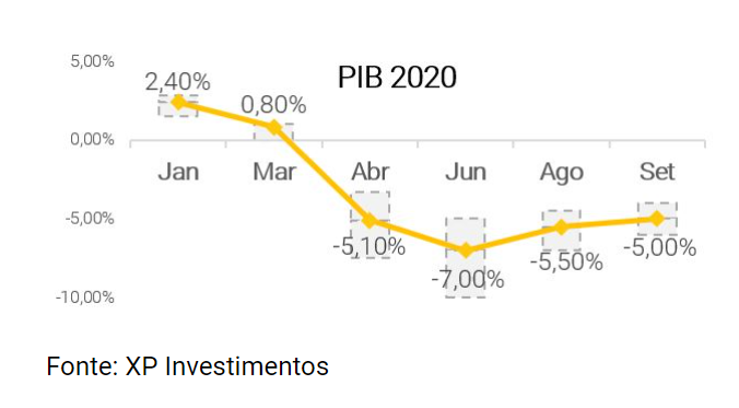 Agora, a expectativa mediana dos gestores aponta para inflação de 2% em 2020, com um aumento desde a última reunião do Copom, e para uma queda de 5% do Produto Interno Bruto (PIB), com melhora nos últimos meses.