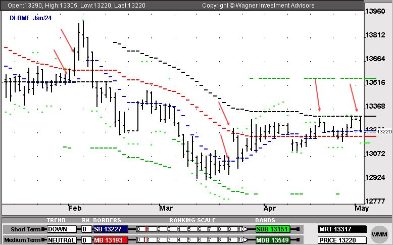 “Bem ou mal, o S&P está em uma tendência de baixa, há bastante tempo; e os DIs ainda estão em uma tendência de alta no longo prazo [veja mais abaixo]”, disse, apesar de uma melhora no curto prazo.