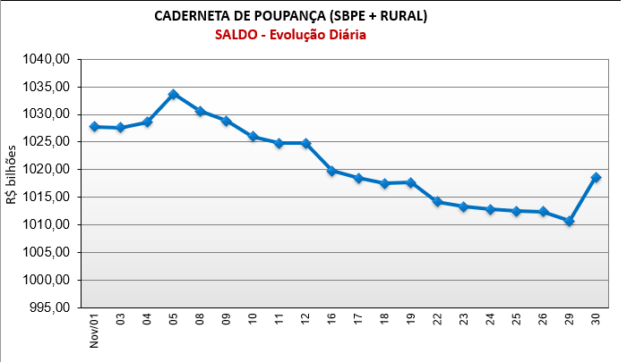 15h01 – Poupança brasileira tem saída líquida de R$ 12,3 bilhões em novembro, diz Banco Central
