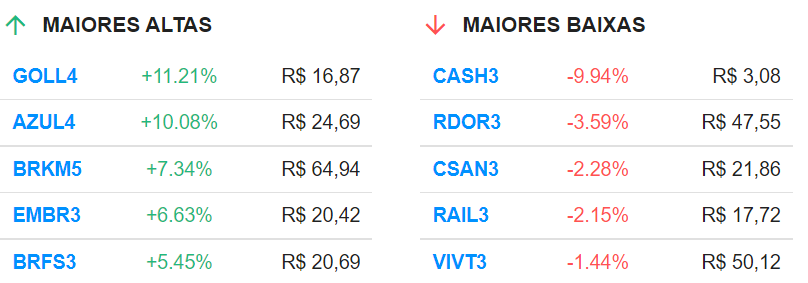 18h16 – As maiores altas e baixas do Ibovespa