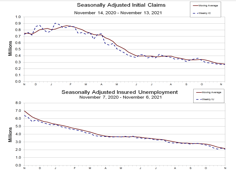 Os pedidos contínuos pelo auxílio vieram em 2,08 milhões, número menor do que o consenso de 2,12 milhões traçado pelos economistas da Dow Jones.