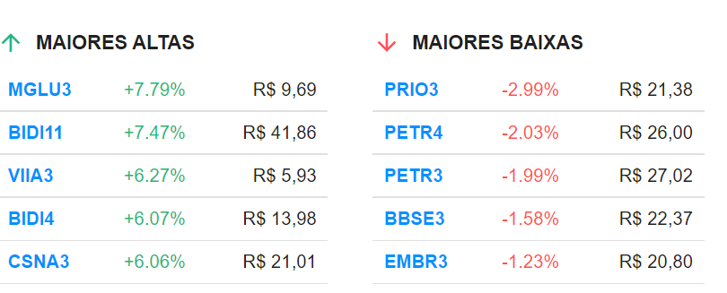 18h23 – Encerramos a cobertura de hoje. Confira os principais destaques do Ibovespa.