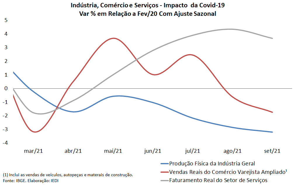 Segundo estudo do IEDI, isso acontece por conta do avanço da vacinação contra Covid-19, tornando a recuperação de serviços mais consistente.