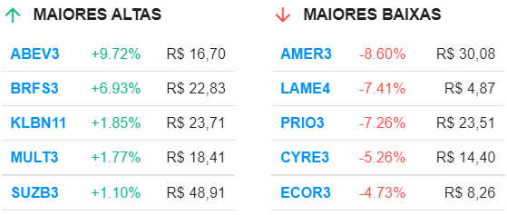 17h19 – Maiores altas e baixas no fechamento da sessão