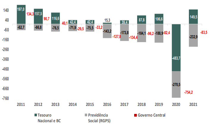 Resultado Primário do Governo Central (acumulado no ano, em R$ Bilhões, a preços de set/21– IPCA)