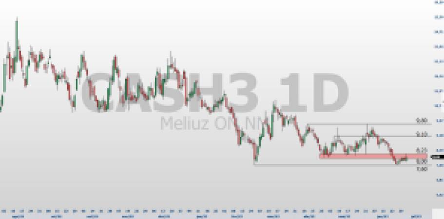 O analista técnico Guilherme Schrepel, da Investimentos 4YOU, destaca que CASH3 está em tendência de baixa desde 2021, desenvolveu uma região de topo e vem realizando topos e fundos descendentes. “Podemos considerar que essa tendência já vem dentro do médio e curto prazo”, aponta.