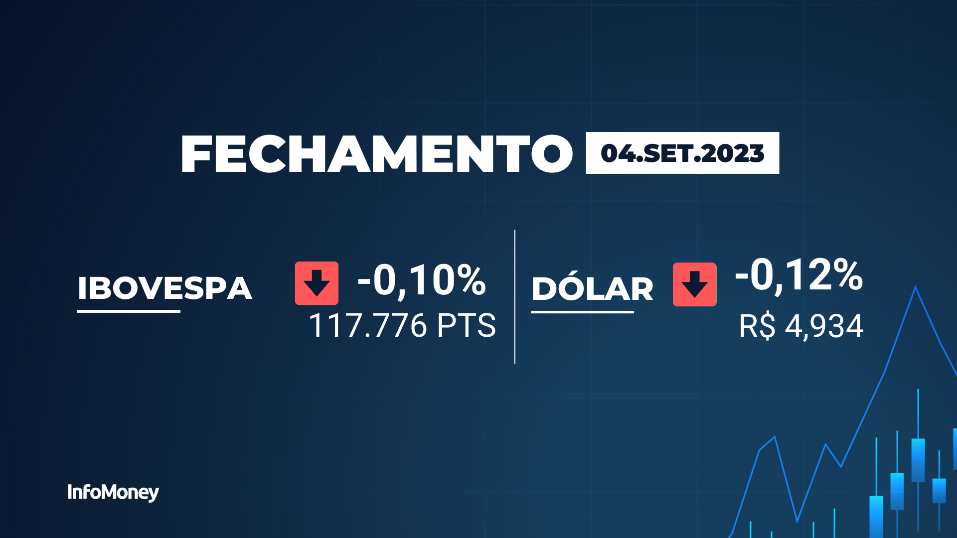 O Ibovespa fechou praticamente estável nesta segunda-feira (4), com leve queda de 0,10%, aos 117.776 pontos.