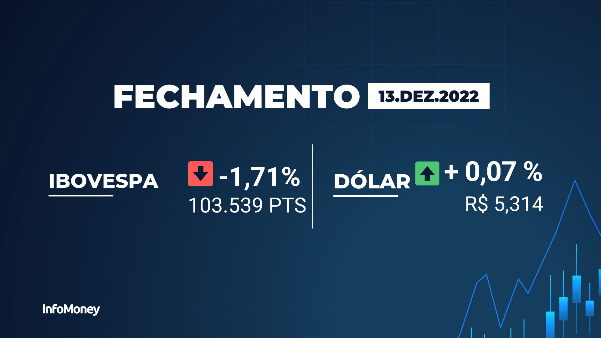 O Ibovespa fechou em queda de 1,71% nesta terça-feira (13), aos 103.539 pontos, e agora acumula queda de 1,22% no ano. O principal índice da Bolsa brasileira recuou e se descolou do que é visto no exterior após o anuncio feito pelo presidente eleito Luiz Inácio Lula da Silva de que Aloizio Mercadante irá ocupar a presidência do Banco Nacional de Desenvolvimento Econômico e Social (BNDES) a partir do próximo ano. Lula também reforçou sua contrariedade a privatizações.