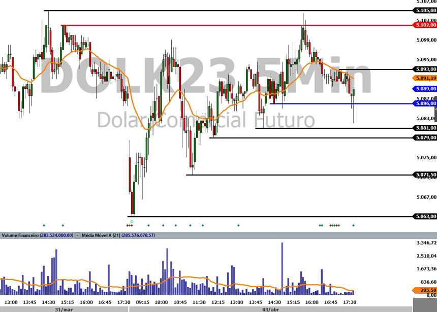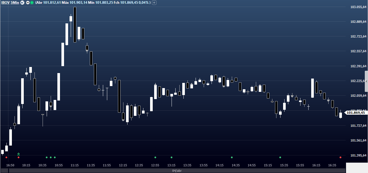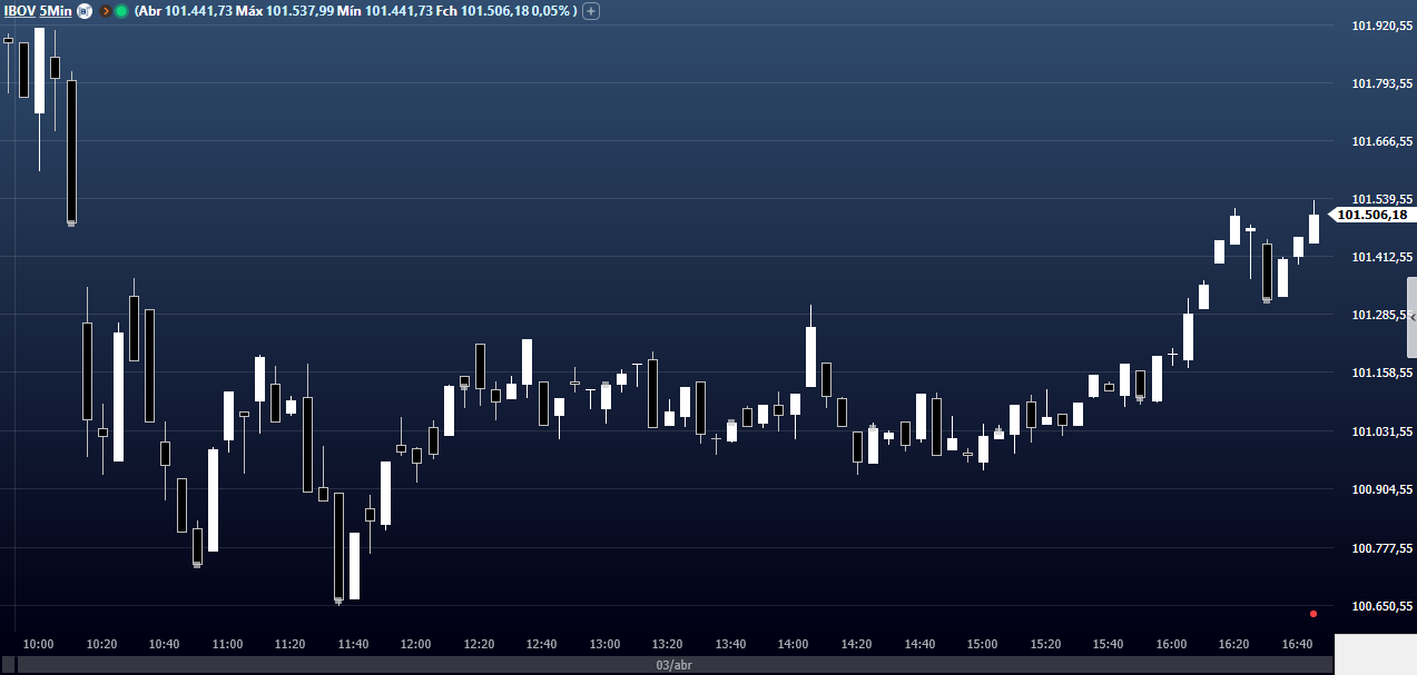 Ibovespa Futuro fecha com alta de 0,54%, aos 102.310 pontos; e dólar futuro, com alta de 0,08%, a R$ 5,0930