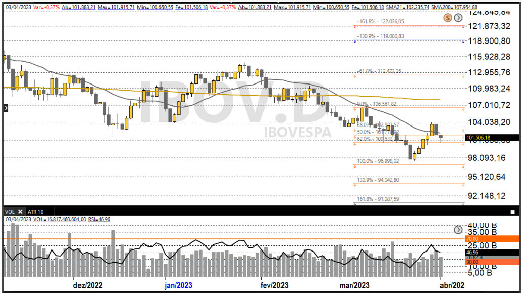 Fechamento: Ibovespa terminou 2ª feira com queda de 0,37%, aos 101.506,18 pontos