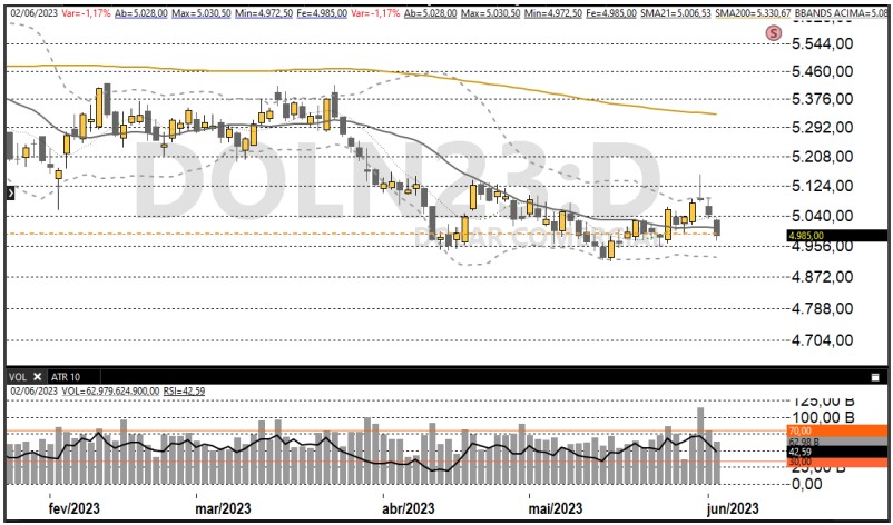 Terceiro pregão de junho, terceiro dia de ganhos. Como canta a Velha Guarda da Portela, “tudo azul, não há mais embaraço entre nós”: o investidor, aparentemente, fez as pazes com o risco e não há embaraço em arriscar, embora ainda espere a queda da Selic. Depois de uma semana de boas notícias, o que se viu hoje foi uma relativa tranquilidade, além de realização e cautela, afinal é uma semana mais curta, pelo feriado de Corpus Christi, e semana que vem o Fomc senta à mesa para desembaraçar a nova taxa de juros. Por aqui, o Ibovespa até passou o dia mais no negativo do que no positivo, mas no final do dia os bancos ganharam fôlego e fecharam com ganhos. O Bradesco (BBDC4), entretanto, ficou em paz com os investidores desde a abertura e sambou bonito no azul durante todo o dia, para fechar com mais 1,82%. O Itaú Unibanco (ITUB4) virou na reta final e acabou com mais 0,22%, enquanto o Banco do Brasil (BBAS3) fechou com mais 0,33%. A B3 (BBAS3) também vacilou durante a sessão, mas encerrou com mais 0,28%. Petrobras (PETR4) ficou com alta de 1,07% e como a mais negociada do dia, com a Opep+ anunciando mais cortes de produção. Mas quem ganhou sem embaraço algum foi a CVC (CVCB3), mais 10,83%, com novo CEO e expectativa de aporte. Enquanto isso, a Vale (VALE3) desprezou o momento positivo do minério de ferro do outro lado do mundo e caiu 0,82%, impedindo uma alta mais robusta do índice. Já Multiplan (MULT3) figurou entre as cinco mais negociadas do dia e caiu 0,54%, também freando o ímpeto altista do Ibov. Para amanhã, espera-se que o relatório da reforma tributária seja apresentado, o que pode vir a ser uma outra boa notícia a continuar desembaraçando os ganhos do Ibovespa e a Bolsa seguir com tudo azul. (Fernando Lopes)