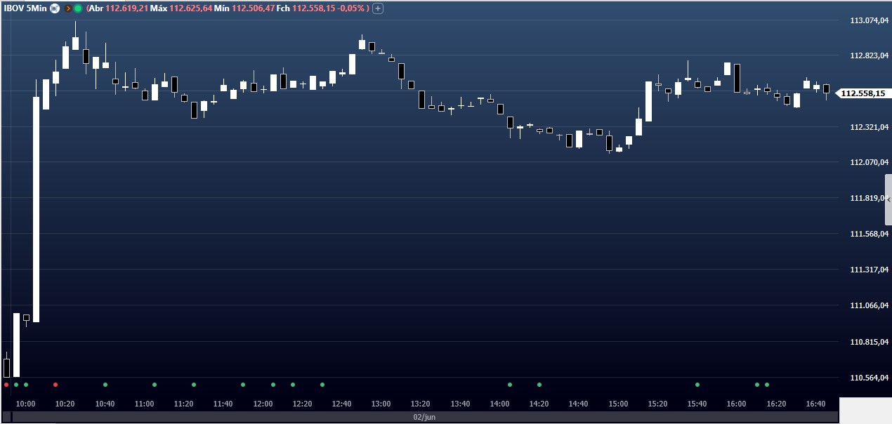 Veja o gráfico de 15 minutos da Bolsa neste mês