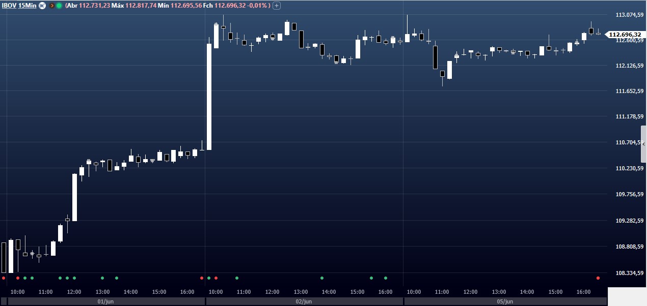 Veja o gráfico de 15 minutos da Bolsa neste mês