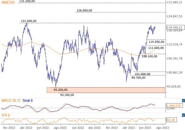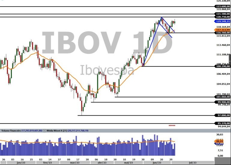 Ibovespa fechou ontem com alta de 0,40%, aos 119.549,21 pontos