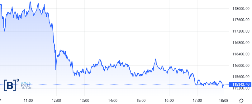 Ibovespa renova mínima, com queda de 2,48%, aos 115.220,95 pontos