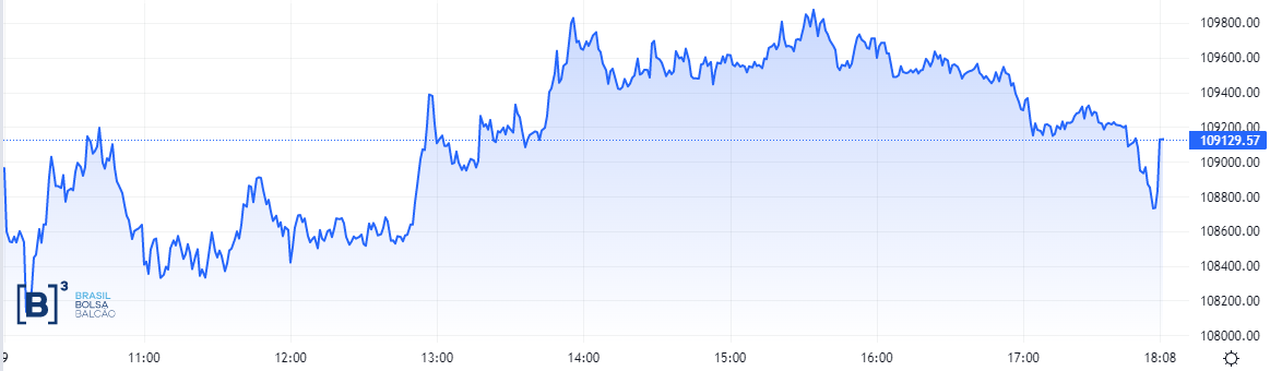 Na reta final, Ibovespa reduz ganhos e sobe 0,11%, aos 109.088,52 pontos