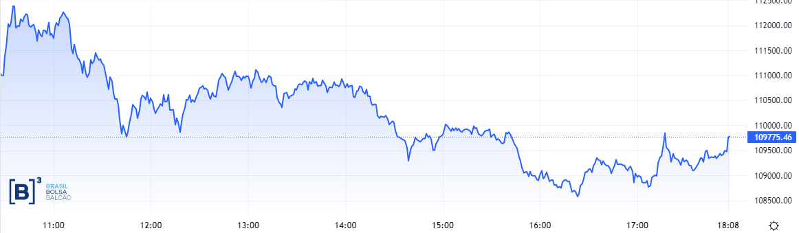 O Ibovespa está em 108.966,21 pontos, o menor patamar desde 30 de setembro de 2022, última sessão antes do primeiro turno das eleições presidenciais, quando o índice variou entre 110.502 e 107.315 pontos (fechou com alta de 2,20%, em 110,036).