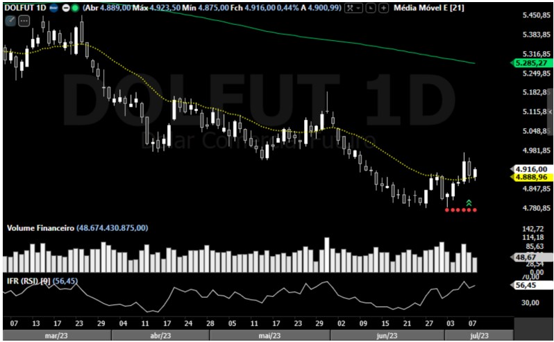Ibovespa Futuro fecha com alta de 0,08%, aos 119.200 pontos; e dólar futuro, com queda de 0,93%, a R$ 4,8705, mínima do dia