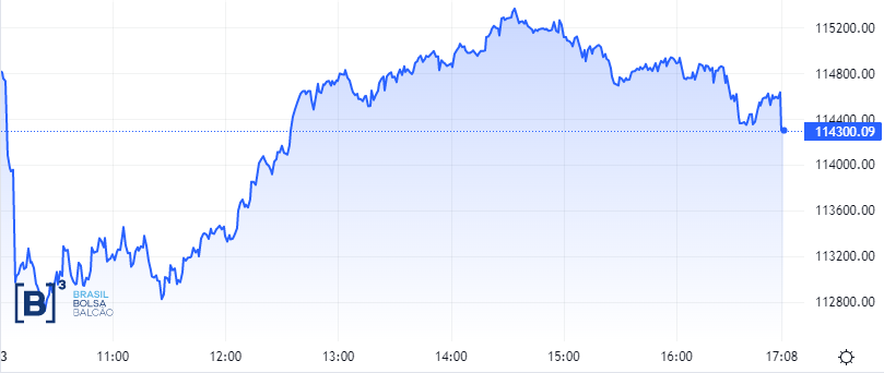 Ibovespa fecha, preliminarmente, com queda de 0,17%, aos 114.633,45 pontos