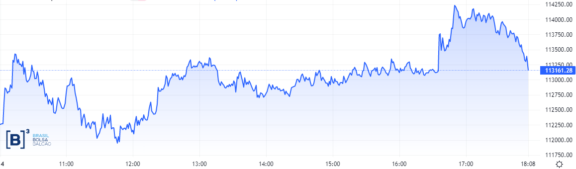 Ibovespa fecha, preliminarmente, com alta de 1,01%, aos 113.388,31 pontos