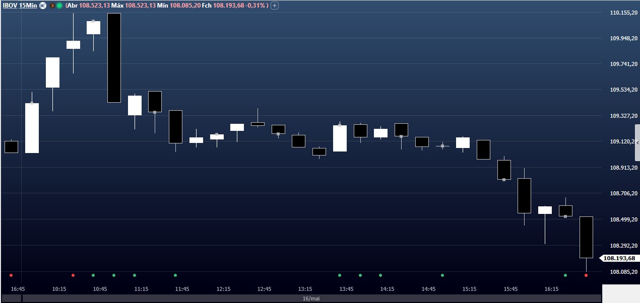 Ibovespa fechou ontem com queda de 0,77%, aos 108.193,68 pontos