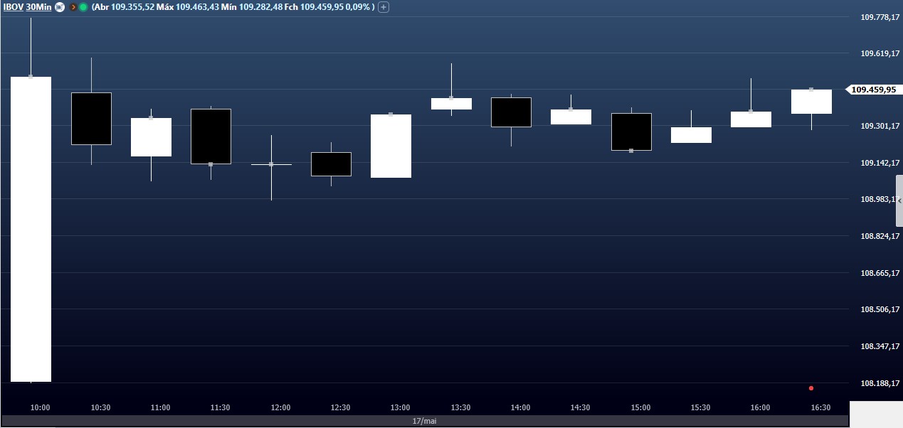 Ibovespa Futuro fecha com alta de 1,52%, aos 110.695 pontos; e dólar futuro, com queda de 0,10%, a R$ 4,9500