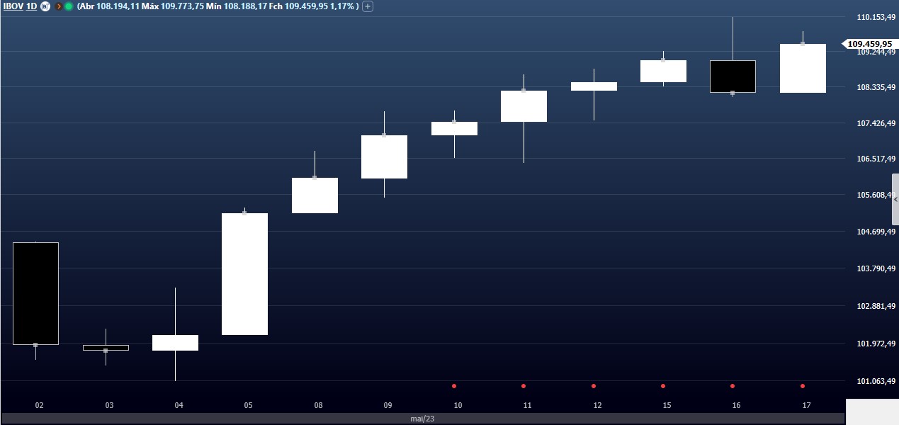 Bolsa segue acumulando ganhos em maio, com 9 de 12 sessões com valorização