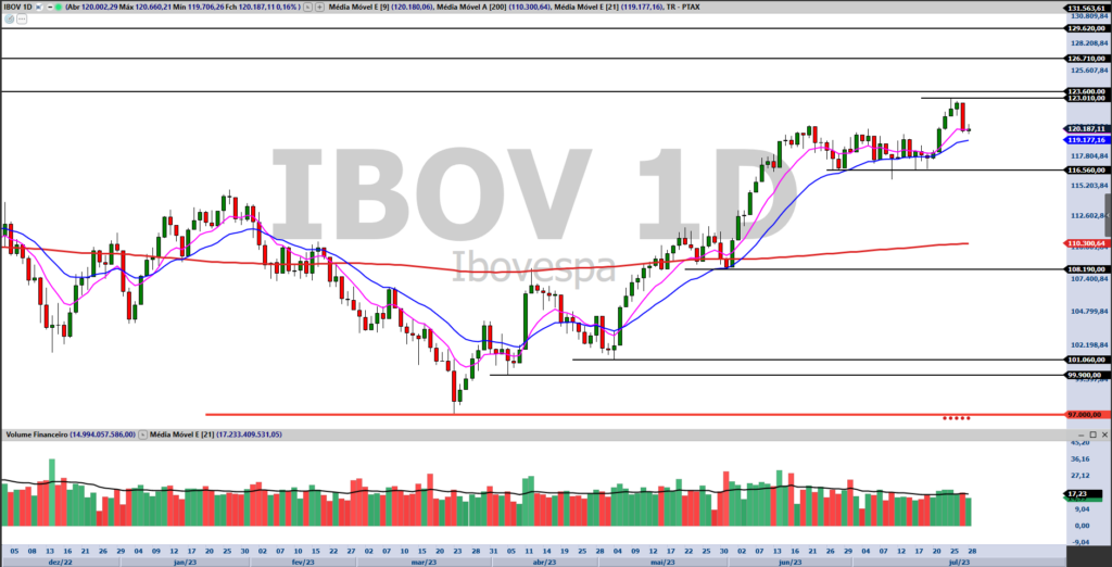 Além deste cenário, o Ibovespa foi beneficiado também por um exterior tranquilo, sem indicadores importantes nos EUA, onde os índices atuaram durante todo dia próximos da estabilidade até conseguirem um leve fôlego no final e fechar com ganhos. Assim, o Ibovespa subiu 1,46%, aos 121,9 mil pontos. Dessa forma, a bolsa brasileira encerrou julho com ganhos de 3,27%, no quarto mês seguido no positivo.