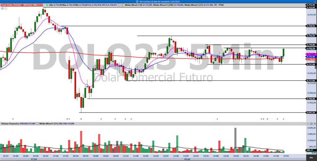 Ibovespa Futuro fecha com alta de 1,57%, aos 122.625 pontos; e dólar futuro, com queda de 0,31%, a R$ 4,7520