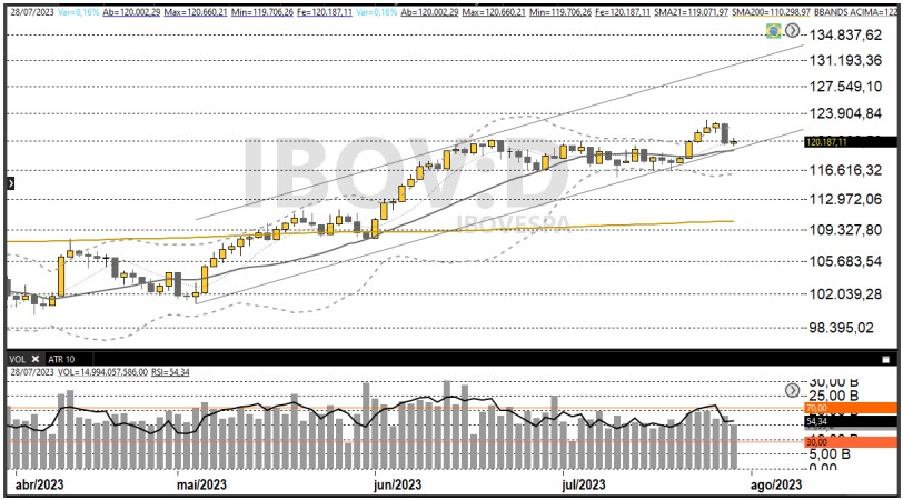Ibovespa fechou sexta-feira (28) com alta de 0,16%, aos 120.187,11 pontos