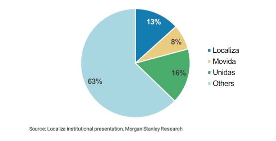 No segmento de aluguel de carros, a Localiza atualmente tem cerca de 51% de participação, enquanto a Unidas tem uma fatia de 17%, totalizando 68% do mercado. Do lado de gestão de frota, as respectivas participações de mercado das empresas são de 13% e 16%, resultando em 29% combinados.