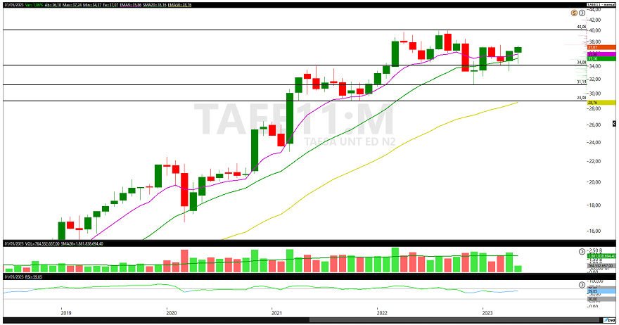 Gráfico mensal longo prazo Taesa: 2019 a 2023
