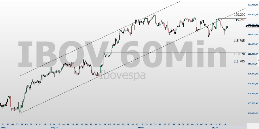 Gráfico 60 minutos do Ibovespa: abril a julho/2023