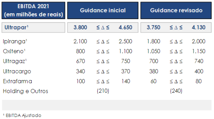Na Ultracargo, “a melhora da projeção de Ebitda decorre da antecipação do início de operação dos terminais de Itaqui e de Vila do Conde, além de ganhos de produtividade acima dos projetados para o ano”.