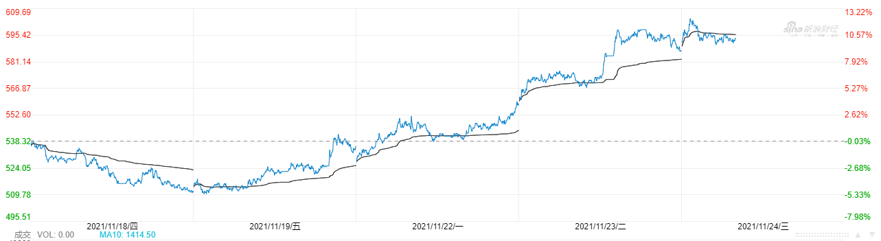 Os contratos futuros do minério de ferro também seguiram esse movimento, atingindo seu limite diário de 10% na sessão da manhã. Os contratos mais negociados na bolsa de Commodities de Dalian, para entrega em janeiro, subiram até 9,9% na sessão da manhã, o maior ganho percentual desde 30 de setembro, e fecharam em alta de 7,8%, a 587 iuanes (US$ 91,96) por tonelada.