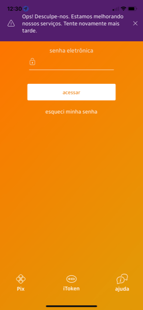 O InfoMoney testou o app por volta das 12h30 e recebeu a seguinte mensagem: “Desculpe-nos. Estamos melhorando nossos serviços. Tente novamente mais tarde”.