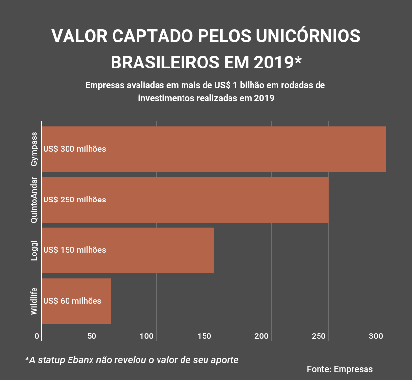O levantamento, realizado pelo site de notícias Crunchbase, revela que, ao todo, 142 companhias ao redor do mundo se juntaram à lista de unicórnios em 2019. Essas empresas levantaram US$ 85,1 bilhões  —  abaixo dos US$ 139 bilhões captados por novos unicórnios em 2018 e dos US$ 93,8 bilhões de 2017.